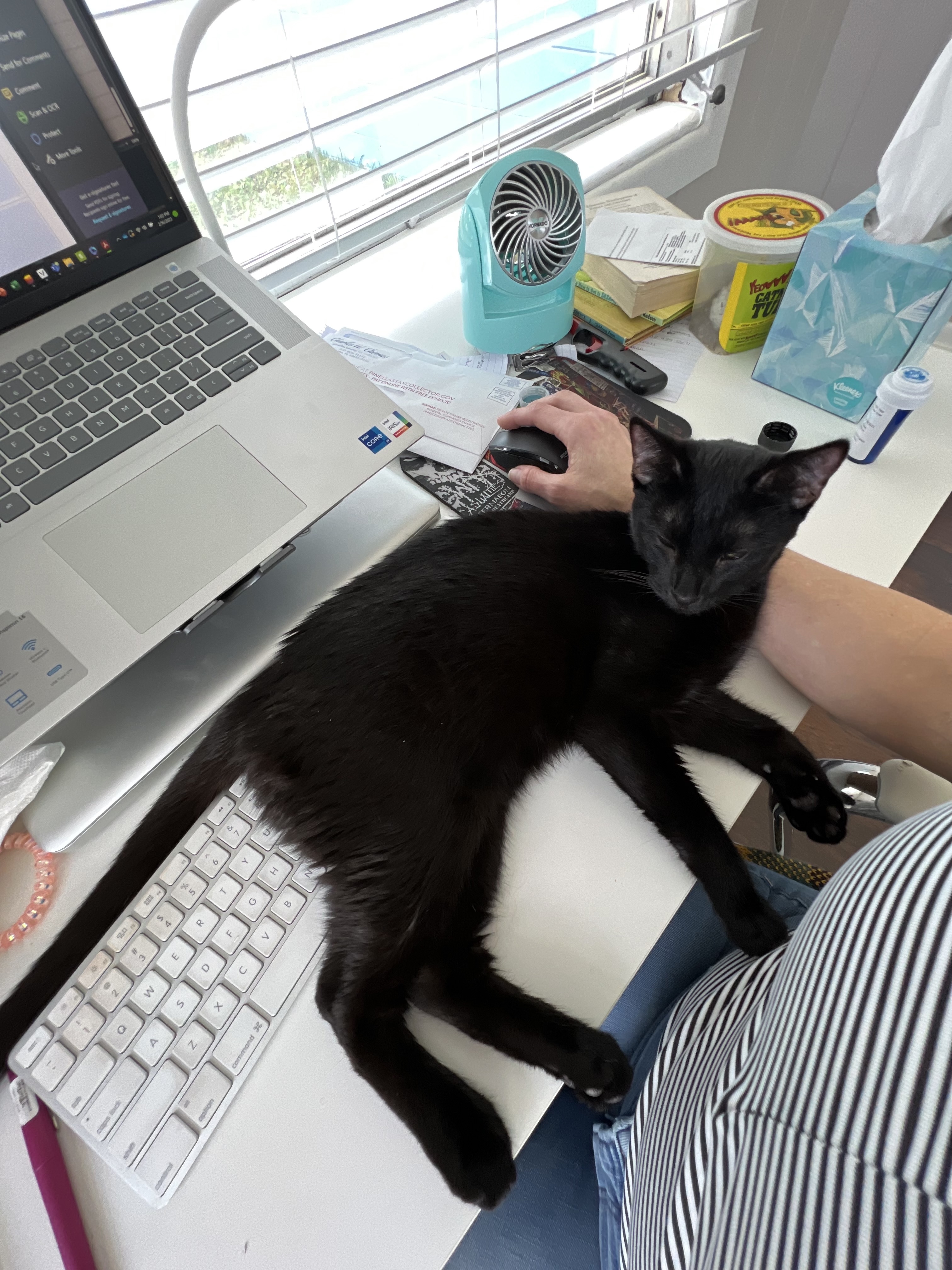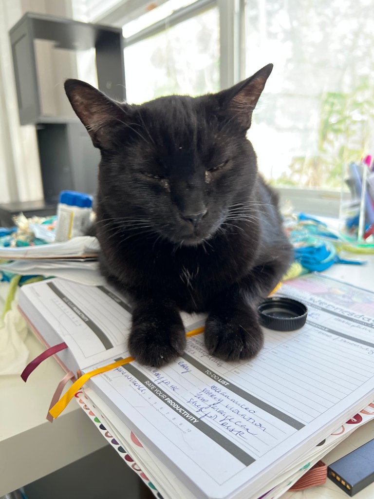 Taco celebrated his Quince this year. The husband would not allow him to have a pretty dress, sadly. He has added to his lemonitis with hyperthyroidism. Moosh was diagnosed with that, and as documented in this blog, we did a one-time very unhappy treatment. Taco does not get that option. The government, in all its wisdom, imposed more stringent rules upon radioactive treatments, and required that instead of 3 days away at the clinic, it should be 5, and if, at the end of 5 days, the levels were not acceptable, the cat would need to stay. This had the effect of ruining the business model of the cat thyroid clinic for no actual scientific good reason, who then closed. The only option is now the big expensive ER vet, and it’s pretty much twice what it was when Moosh got it. At least, this was the state of affairs the last time I spoke about it with my vet, whereupon we quashed that idea and agreed on medicine. Oh, except Taco is allergic to oral medicine. SHOCKING. We now have specially compounded transdermal cream to rub into his ear, and he just LOVES that.