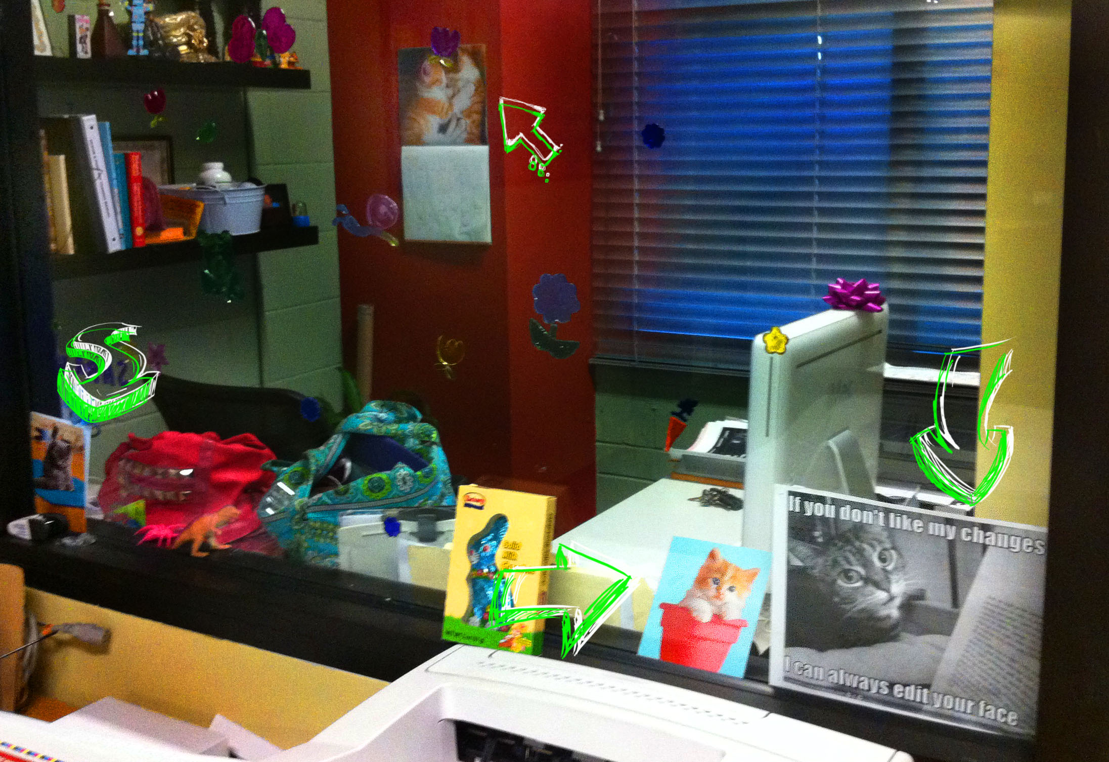 A view from the outside. I have thoughtfully placed arrows next to the cats. My lone lolcat is very reflective of my job, i.e. proofreading.