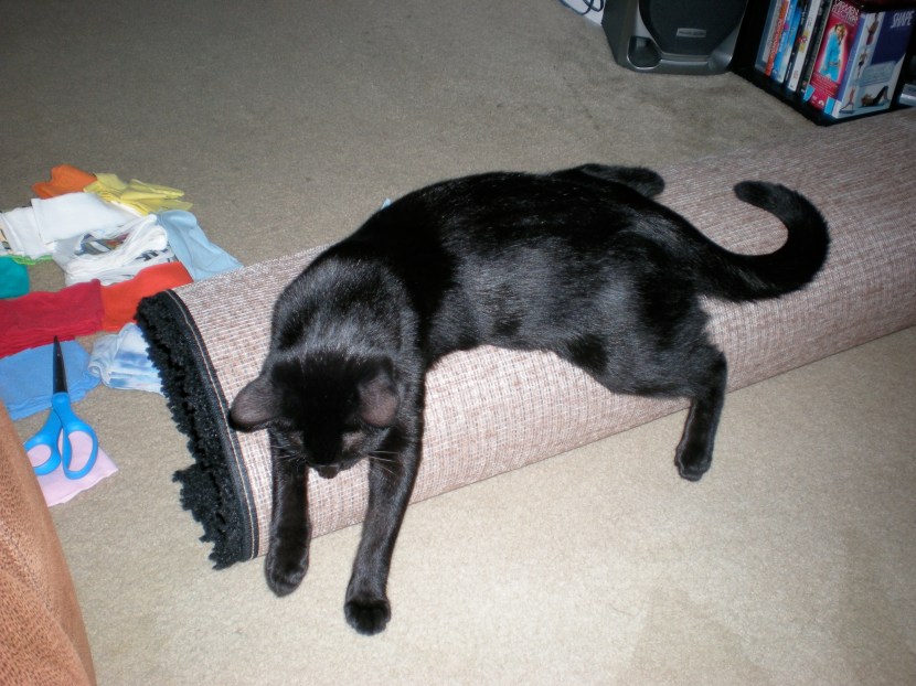 Taco will scoop needles out of my pin cushion if I leave it somewhere accessible. He also finds it fun to pounce on my scissors while I’m in the middle of cutting fabric.