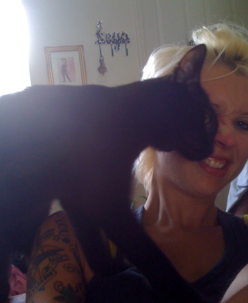 Head butts are the best! I have two black kittys, Blossum & Petals also very lovable.