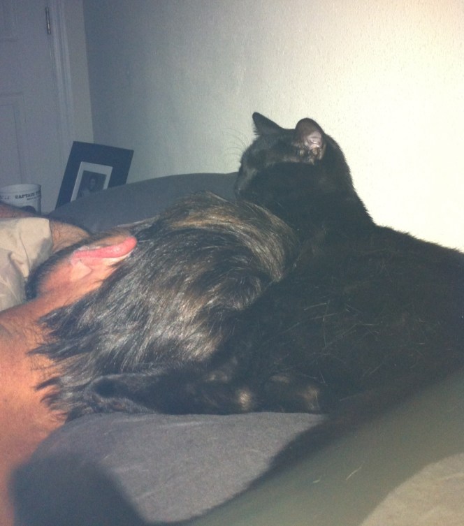 So kind of Moosh to allow Daddy to put his head on the pillow.