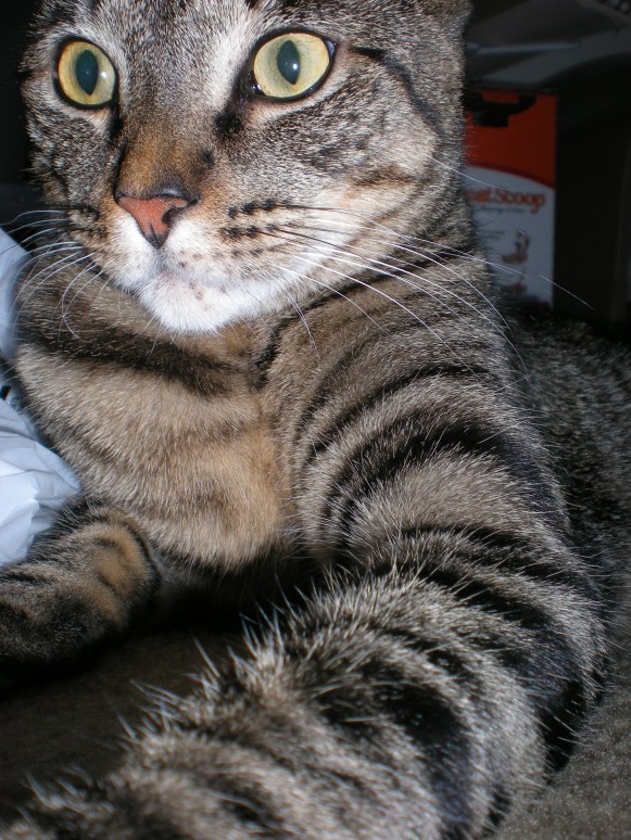 Of course, I only fed them half of what I normally do, and I know they’re starving but I reasoned that somewhat starving kitty was better than a kitty who was completely starved because he ate too fast and ralphed everything back up. No vet today! Yay!
