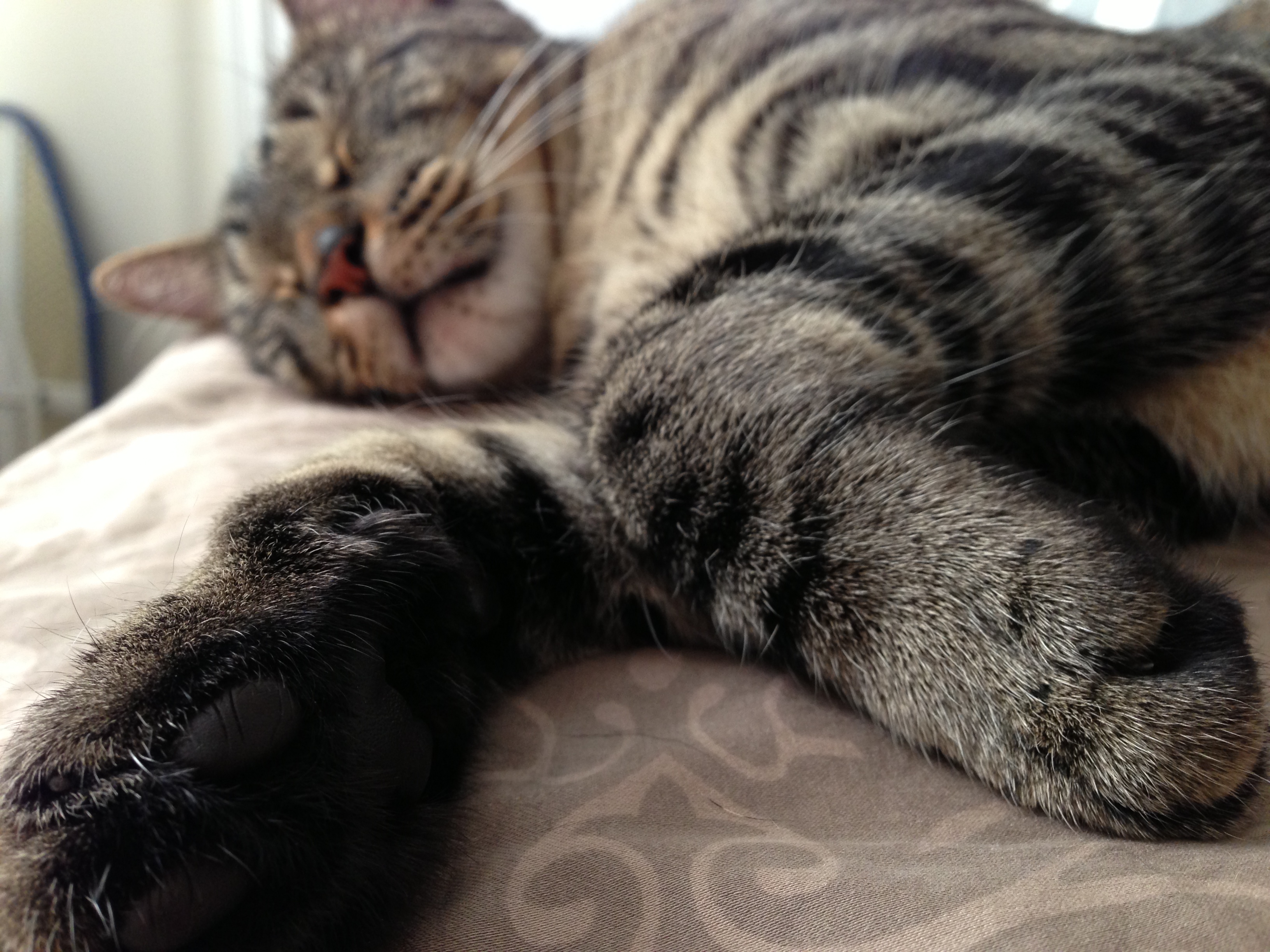 I suppose it was better that I saw it rather than the boyfriend NOT see it and lay in it (it was all on his side of the bed), but cleaning up kitty puke is never my favorite chore. My mom’s cats (also my cats) puke on her bed all the time. Now I understand how she feels.