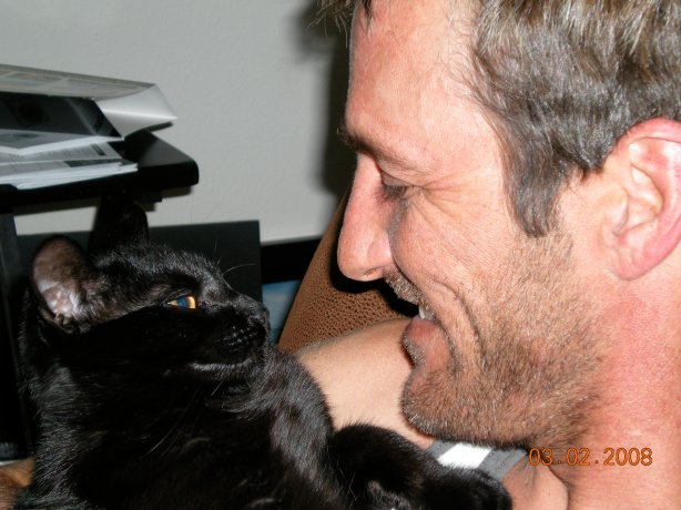 Grandpa (Dad, I’m sorry, but furry grandchildren is all you’re gonna get) has two Daddy’s girls of his own — one human, one cat. Joanie, my dad’s kitty, has hated me for most of her life. Hisses when I come near. Very jealous. But she’s mellowed with age, and I love her anyway.