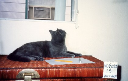 I decided Chaos was his name, because, as I said, I was into punk rock and rebelling. It didn’t strike me at the time that this wasn’t a particularly great cat name. Not until we got another kitten two years later and he somehow morphed into Fatty while the kitten morphed into Little (CREATIVE ALERT).