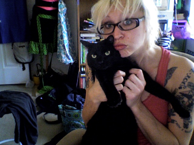 Hi. I’m Sarah. I’m a 30-year-old crazy cat lady who has two cats at home (with her boyfriend, yes, I am not a single crazy cat lady) and two at her mom’s. I am reasonably sure that at least one of my cats (Taco, you’ll meet him later) could successfully fill a reality show. I have continuously had at least one cat since my parents divorced when I was 9 with the exception of two times…once when I moved out (even though I still really had two at my mom’s) and again after we had to put our Jager to sleep (even though I still really had two at my mom’s). I have enough google and real-life cat knowledge to put me through vet school, but as my mother so nicely pointed out, “You couldn’t do that. You’d cry over every single one.” And, she is right. I currently have Fatty, the big fat black cat I have had since I was 16, in my lap as he is trying to recover from anemia. So I thought, “Hey. Why don’t you blog about cats?” That’s what crazy cat ladies do in the technology age, right? So that’s me. I don’t believe in god or fate or anything but sometimes I do feel like the universe gives me the lemon cats so I can take care of them. I don’t mind so much until they make me cry. Which admittedly isn’t that hard, I’m a pisces after all.