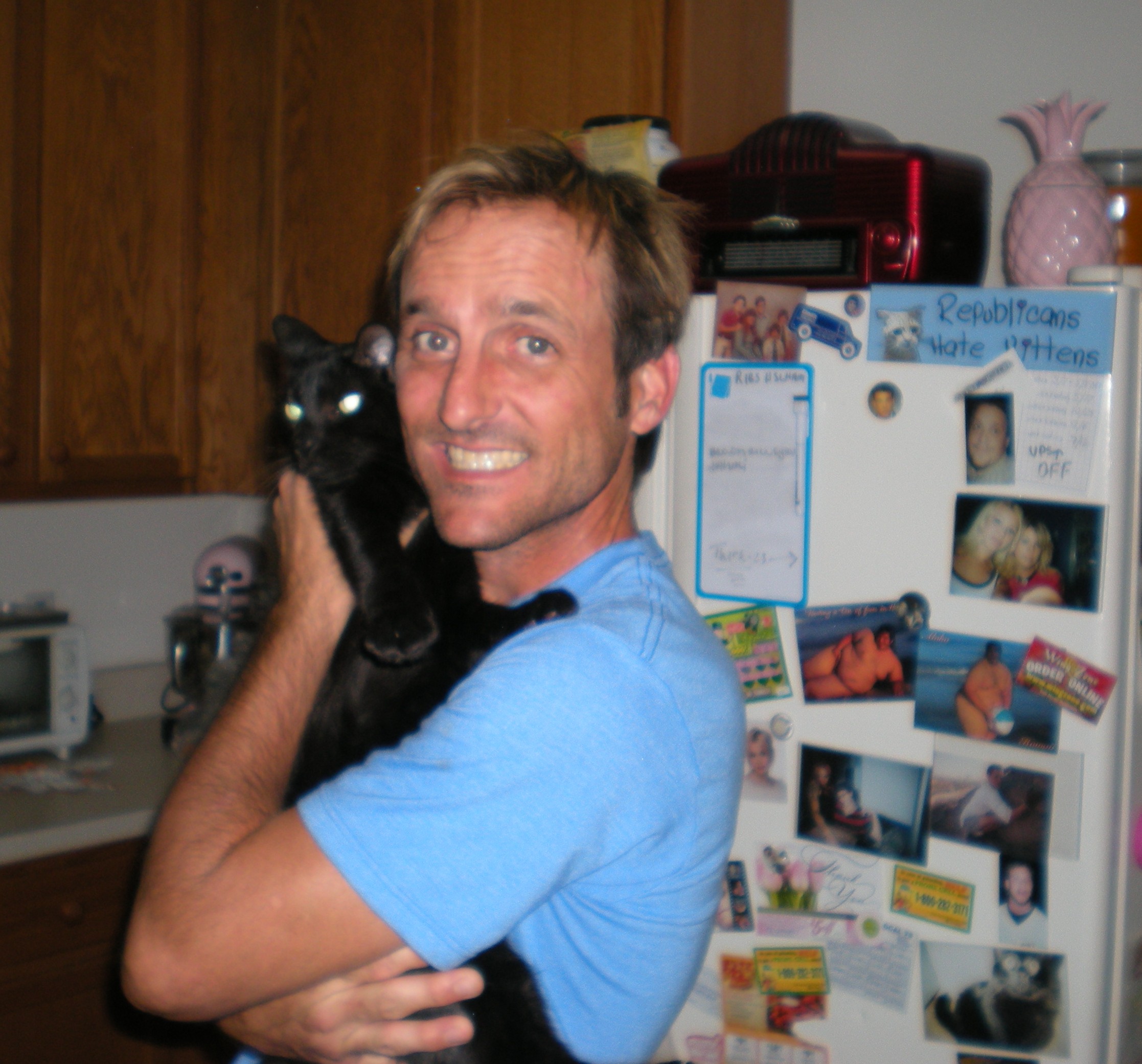 I got home from work that night to find Moosh. My darling boyfriend went to see him, unbeknownst to me. Moosh laid the charm on thick with the ol’ man. Put a paw on each side of his neck and nuzzled in. Jason thinks he’s a tough guy but he’s really a pushover for kitty snuggles. He’s going to kill me for making this public. But his friends won’t read this, and in the event they do, they’d have to freely admit they looked at a blog about cats. Catch-22, suckaz.
