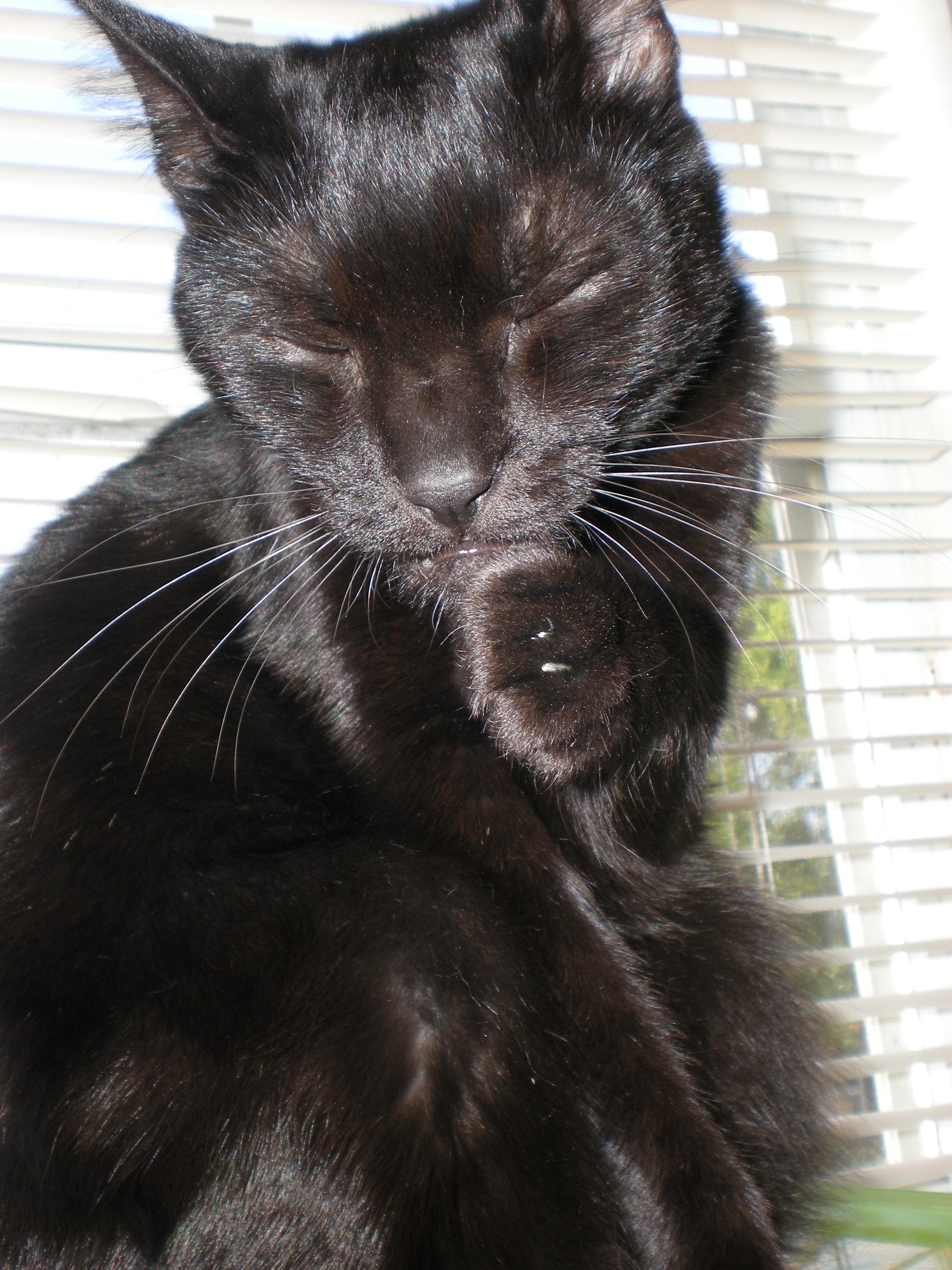 Shadow was my first cat ever. After my parents divorced and my mom bought a house , I got my first cat. Up until this point I had only been allowed birds and hamsters, this having something to do with my dad not wanting a cat for reasons that I didn’t know until later in life when he repented and got his own cat, but that’s another story. Anyway, when it was just me and my mom living in a house that we owned, I finally got to experience kitty momminess. Shadow came with his mom (I think her name was Whisper or Wispy, we just called her Momma). And eventually Shadow became Baby. I don’t remember where we got them and why Momma was an outdoor cat and Baby an indoor, but all the same, this is where it all began. I have an entire album of pictures of Baby. Just like I have an entire digital album of my current ones.