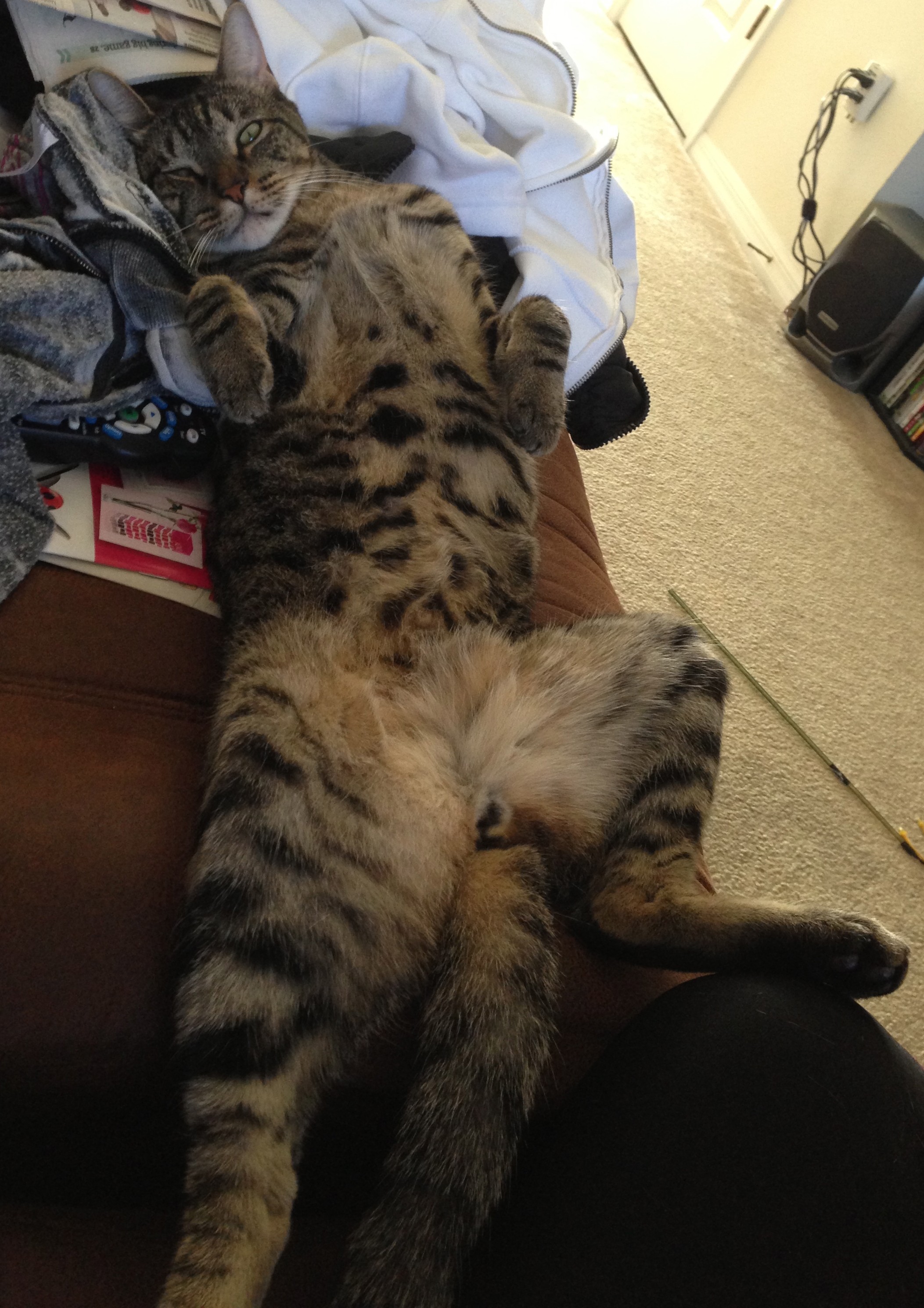 Yeah. So I’m lazy. Again. I DID manage to take my lazy ass to the mall today (I hate the mall) to spend christmas gift cards. I even bought a sensible dress for work. It’s leopard print, so I suppose it’s not TOO sensible, but nevertheless, sensible for me. The rest of my day has consisted of taking pictures of cats. I thought I’d share.