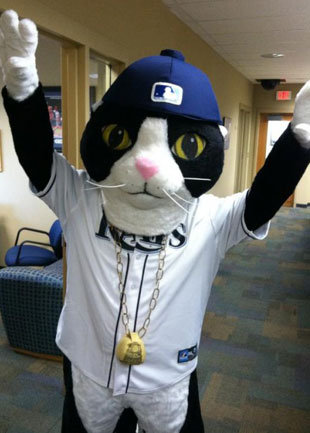 Yeah. That’s fabulous. It started as a scoreboard gimmick, with a video of a cat in a Rays jersey DJing, because why not? DJ Kitty is now so popular that last year they made him an official mascot.