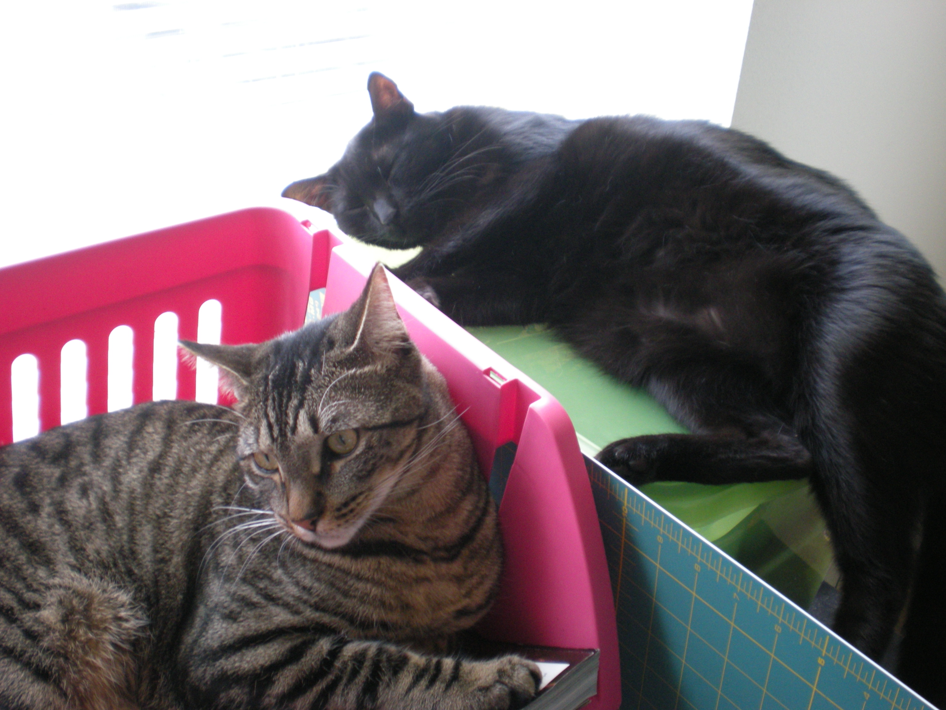 I will never understand why it takes Taco two full days to stop hissing at Moosh when he gets back from the vet. It’s not like his scent isn’t EVERYWHERE. Sometimes I think they’re really smart, and sometimes I agree with the boyfriend about them having pea brains.