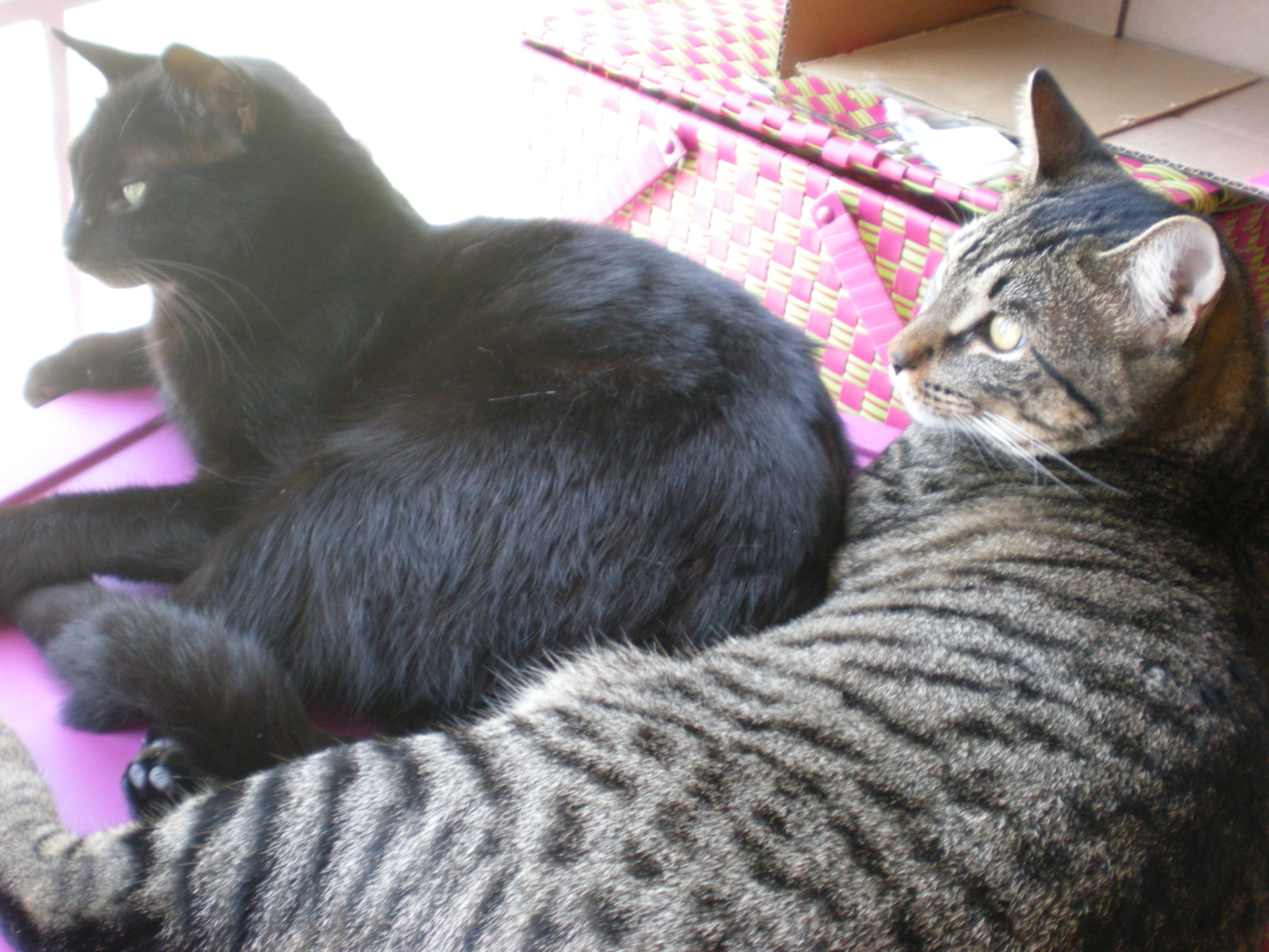 Anyway, I thought that his introduction to his brother Moosh Moosh would be seamless, as he already had a black brother, Zorro. I seriously live in a dream world sometimes. Like he would be tricked into believing all black cats are his brother. What ACTUALLY happened was an awful lot of hissing on Taco’s part. Moosh was intrigued but pretty much “whatever” about the whole thing.