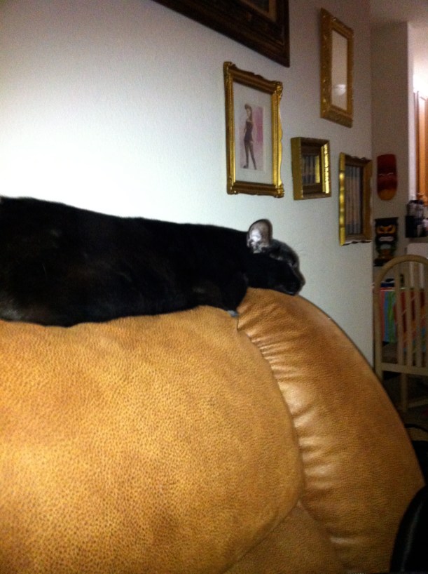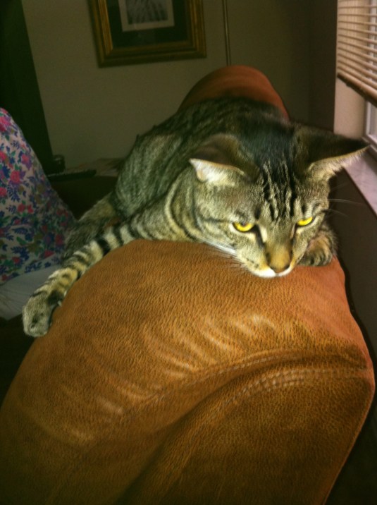Yet he peed on the couch again the other day. I don’t even really want to talk about it, because that means facing it, and yeah, I know, it’s a COUCH, but it’s OUR couch and while I’m totally ok with my crazy cat lady status, I’ve completely accepted that IS my life, I’m not ok with my house smelling like cat piss. I’d like to have people over. I’d like to utilize the couch for more than just the puppy pads that are currently adorning it. I’ve done everything to stop it. I don’t know what else to do. It’s a fairly new couch. Do I just accept that it’s never going to stop? Do we just get rid of the couch? What if we have it professionally cleaned and all and he pees on it again? What if we get rid of the couch and he just pees on the loveseat? I’m fully aware that there are worse problems in life. But this is MY life and I want a damn couch I can entertain people on. *I* would like to sit on my couch. MY usual seat was on that couch.