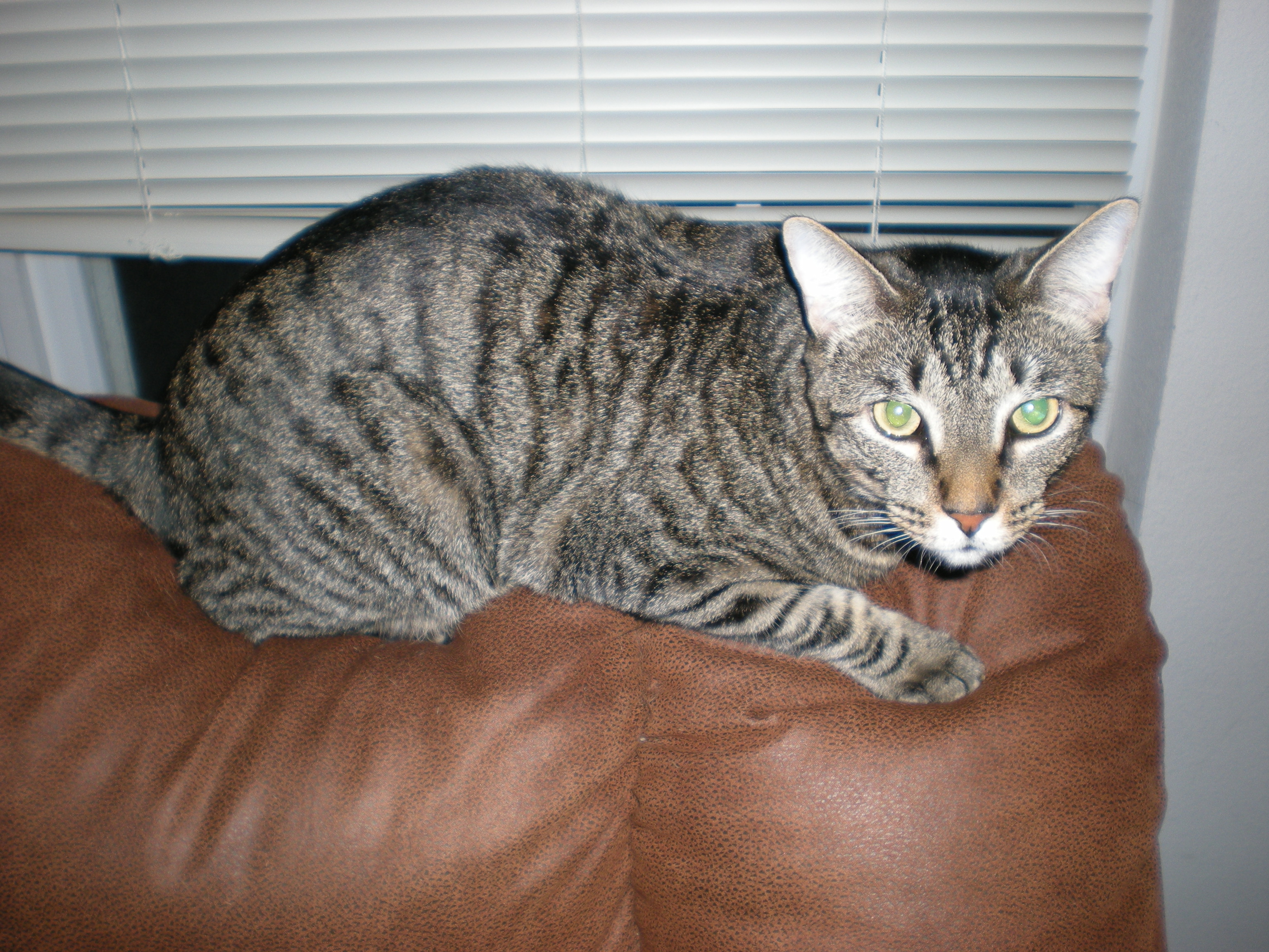 Jackson also says that cats are either tree dwellers or bush dwellers. Moosh is definitely a tree dweller, he wants to be on top of everything. I found him in my cabinet once. Next to the clean glasses. Taco has no interest in jumping on much unless there’s something for him to mess with. He can, however, jump chest high. I wish I had a better camera that was capable of catching him in a leap, because it’s really a sight to see. I assume that’s the Bengal in him. I don’t know what any of this means in terms of making my cats behave better, though.