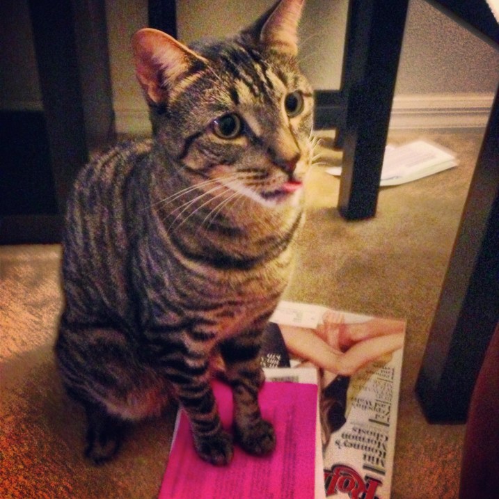 I decided to introduce Taco next. He’s the newest addition to my harem but by far the biggest brat. By “brat” I mean that he keeps us all on our toes. We adopted him from a friend who’d rescued a preggo stray, Taco being one of the litter resulting from said preggo stray. She named him Fernando, which I loved, but a condition of Jason’s (that’s my other half) was that he was to be named after Taco from “The League.” So whatever. Taco’s fine with me. It works for him.