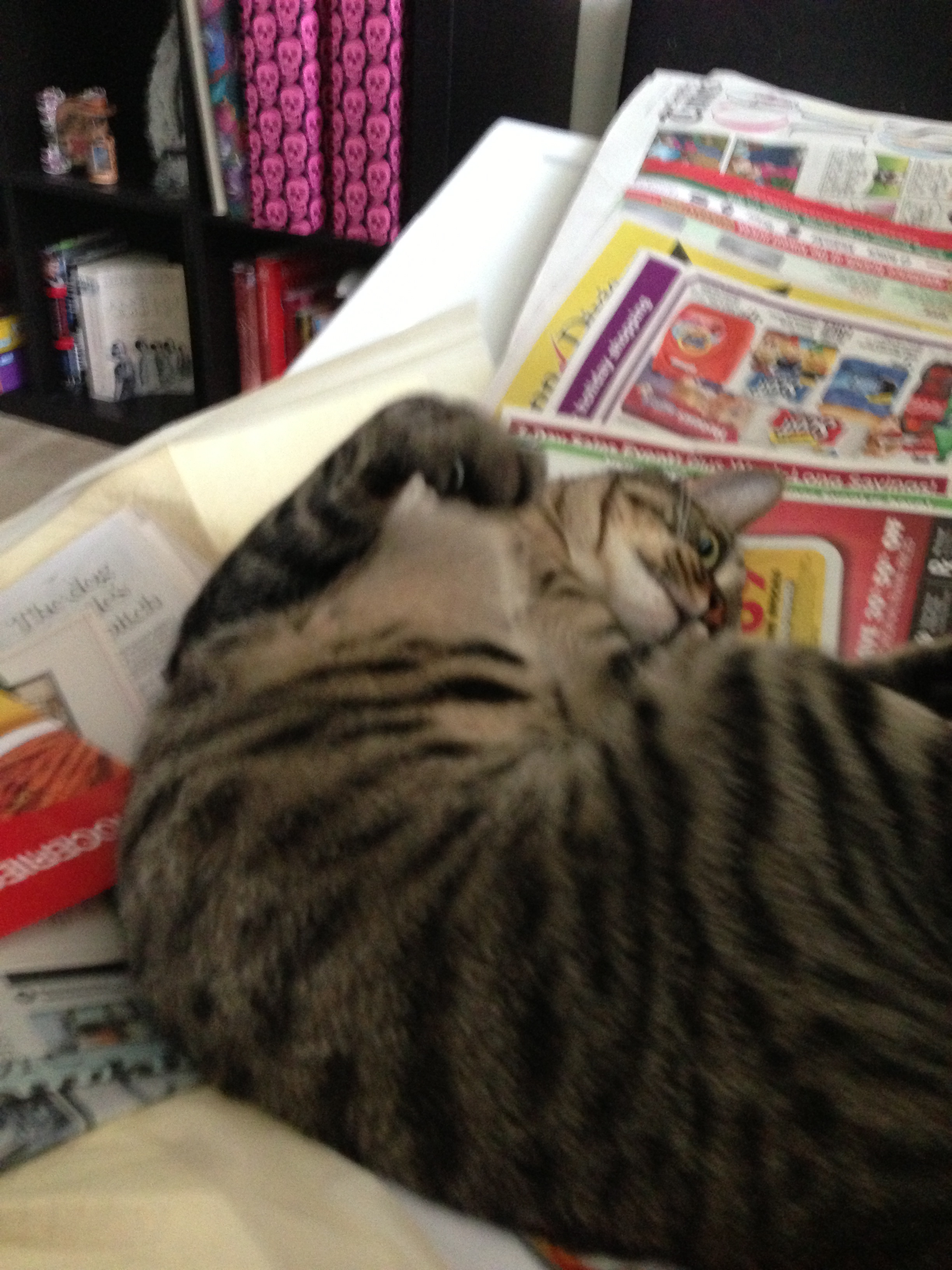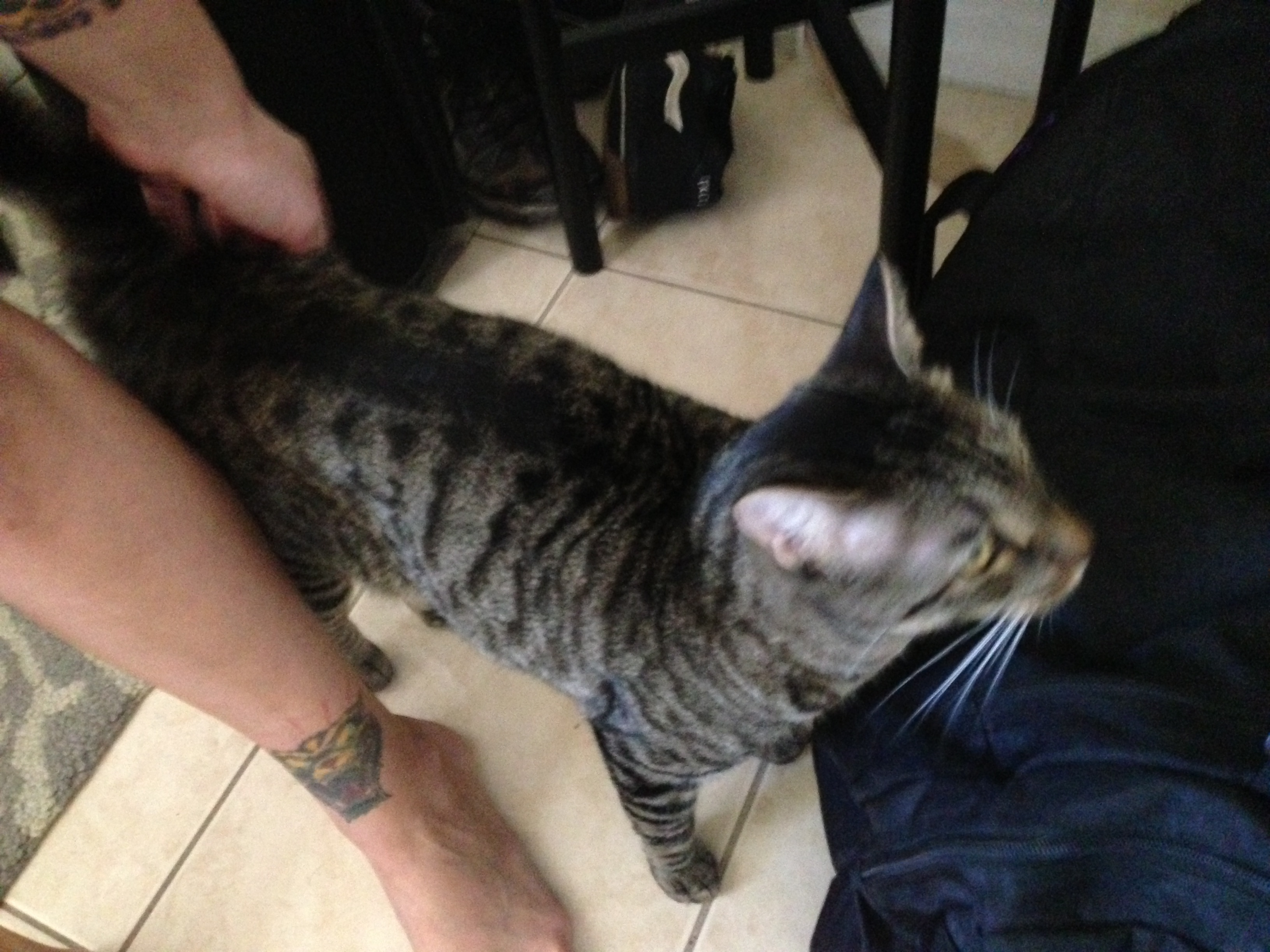 I also spent some quality time with my mom and my other cats today. By this I mean one allowed me to maneuver under a chair to pet him and the other demanded attention to his fat belly.