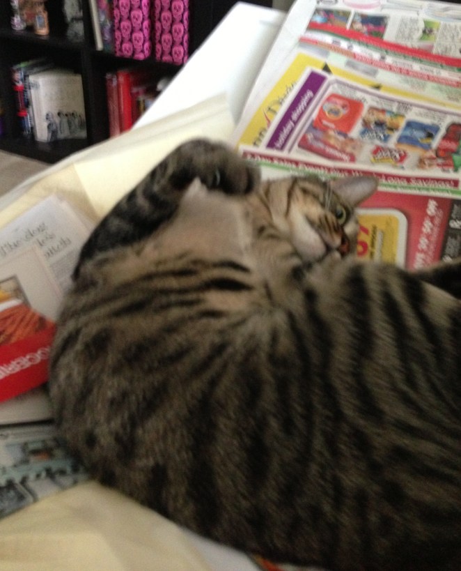 Then I came home. To a Taco that seems to be extra loud. He’s been meowing up a storm lately. I am ready to punch him. I won’t, of course, but I threaten him anyway. He meows in response. I’m considering not coming home at all tomorrow.