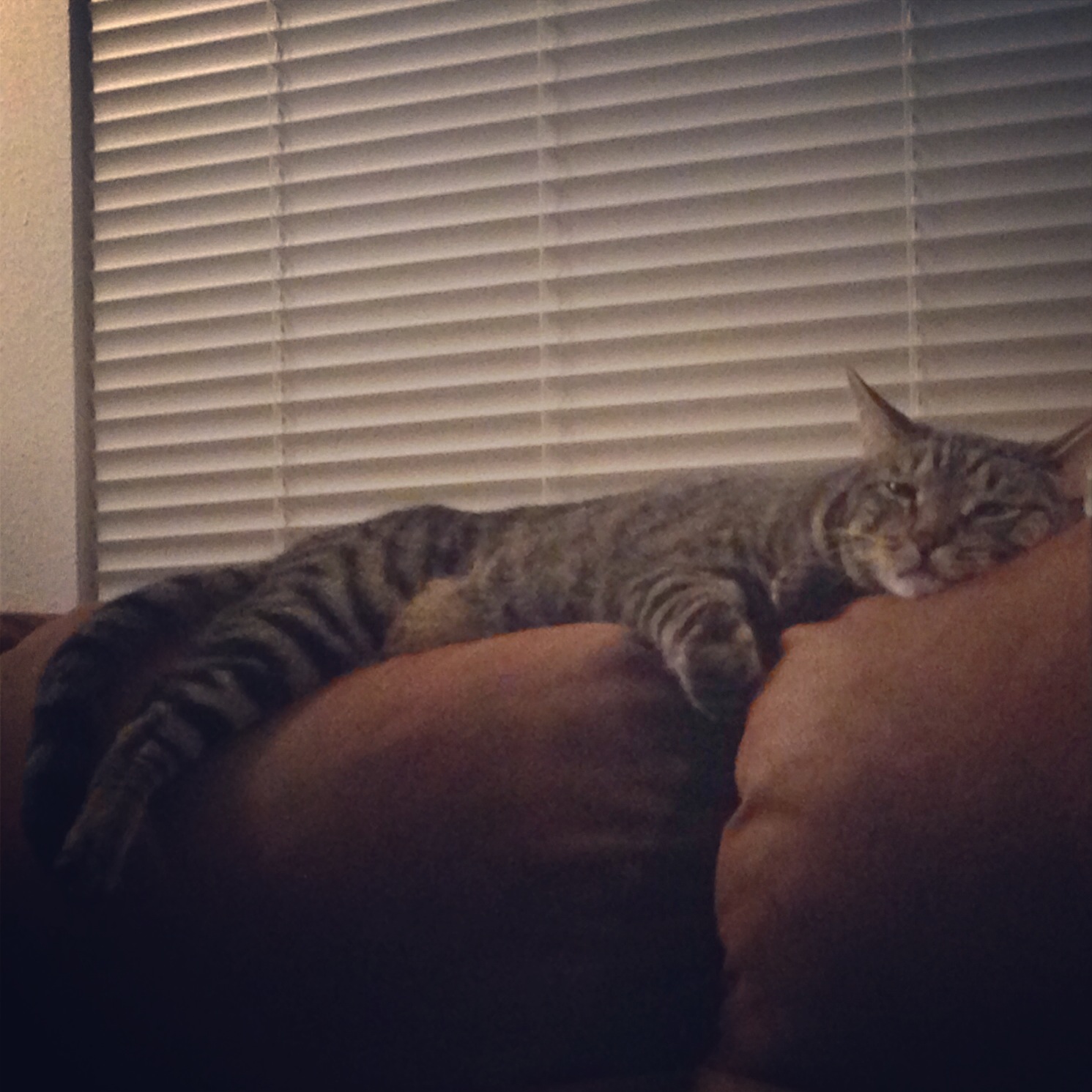 So much affection. Taco has followed me meowing for 3 fulls hours now. Everywhere I go, there he is. It’s ridiculous. I mean, I’m glad they weren’t mad at us for having left them for 3 days but I didn’t expect that Taco would be so concerned upon my return that I would leave again. Moosh has been lovey but modestly so, especially in comparison to Mr. Attached To Mommy’s Hip.